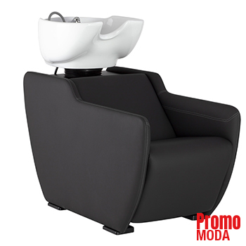 Backrest, seat and armrests in polyurethane foam on a wooden and metal structure. Skai upholstery of your choice. Fiberglass structure, white or black. Swinging ceramic basin with adjustable junction. Multipurpose trays. Optional legrest and/or vibrating massage.