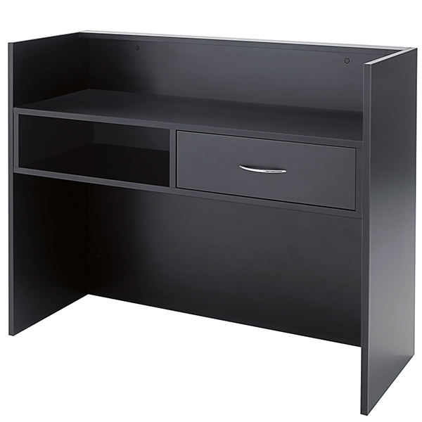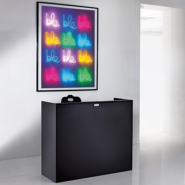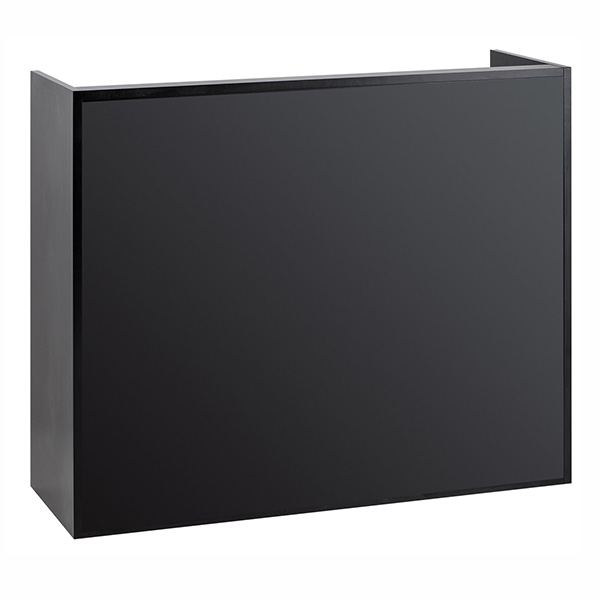 Estructura de melamina negra. Cajón con cerradura y compartimento abierto. Amplia gama de acabados disponibles.