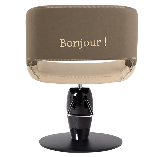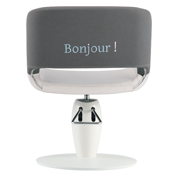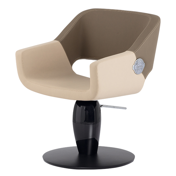 Schienale e seduta in poliuretano schiumato con inserti in legno. Rivestimenti skai a scelta. Base girevole in alluminio o con pompa idraulica e freno.
