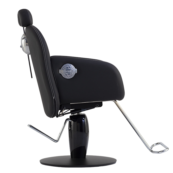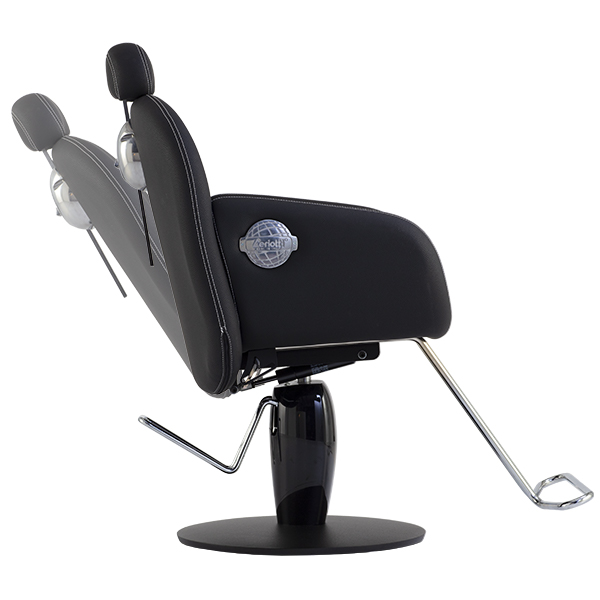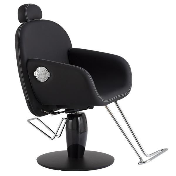 Schienale e seduta in poliuretano schiumato con inserti in legno. Rivestimenti skai a scelta. Base girevole in alluminio o con pompa idraulica e freno.