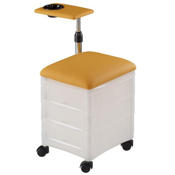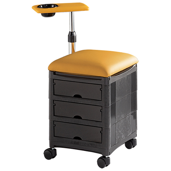 Urban manicure è un carrello in plastica per estetica con tre cassetti scorrevoli ed estraibili. Completo di seduta imbottita con rivestimento skai a scelta e supporto poggia mano regolabile in altezza.