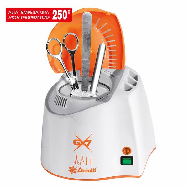 Die Quarzkugeln werden auf 250 ° C erhitzt und übertragen die Wärme durch Wärmeleitung an die in das Gerät eingesetzten Instrumente, wodurch ihre Sterilisation in extrem schnellen Zeiten ermöglicht wird.