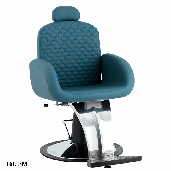 und Sitz in Polyurethanschaum auf Holzstruktur. Breite skai Farbpalette verfügbar. Fußstütze aus Polyurethanschaum aus Aluminiumstruktur, poliert und glasiert. Bodenteller mit hydraulisch arretierbarer Pumpe. Liegende Rückenlehne mit verstellbarer Kopfstütze.