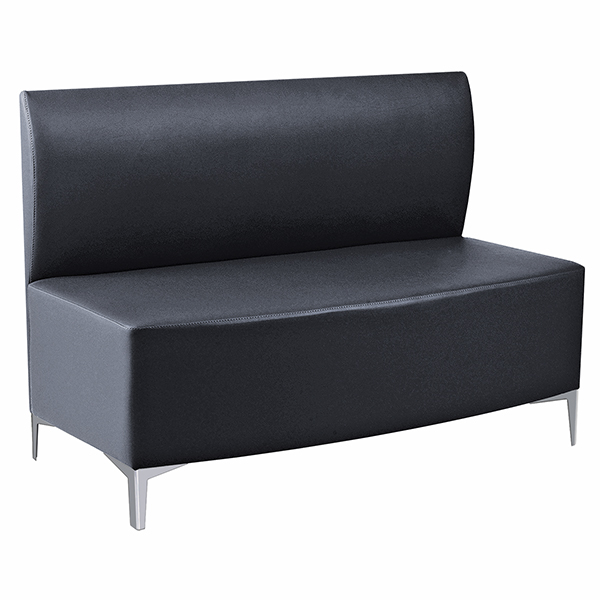 Seduta in poliuretano schiumato con inserto in legno. Piedi di appoggio in alluminio pressofuso. Rivestimenti skai a scelta. Possibilità versione con piantanette portacasco due posti.